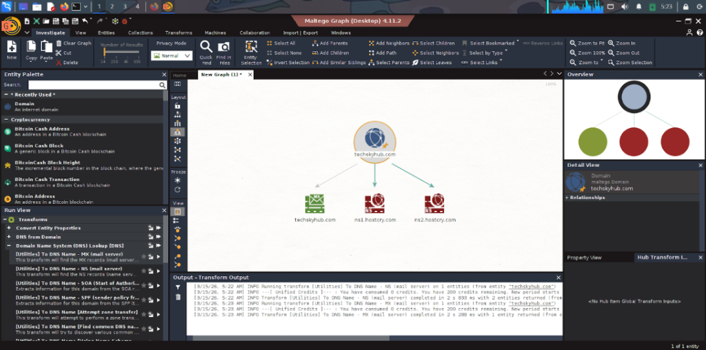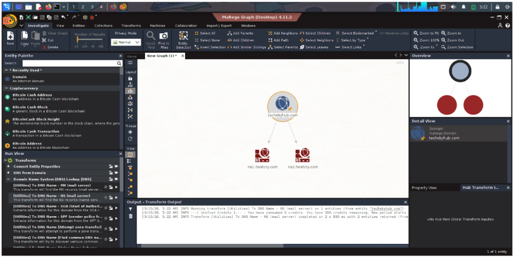 From Infrastructure, click ‘Domain’ and change it to techskyhub.com. At this stage, no relationships are established, and the focus is on defining the target for further expansion.